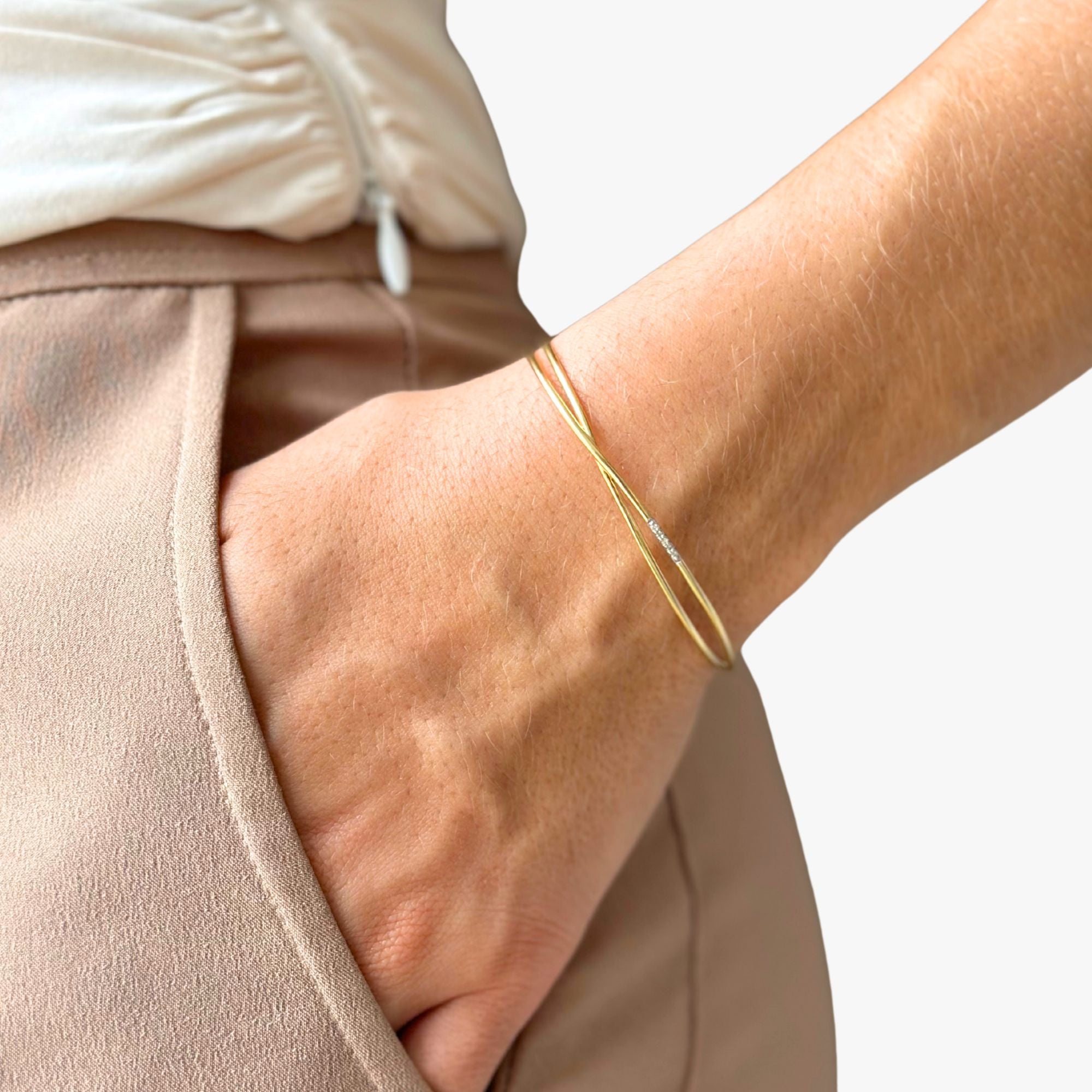 Este bracelete em Ouro Amarelo 18K, com cinco diamantes centrais reluzentes, é a combinação perfeita de elegância e sofisticação. As... Leia mais