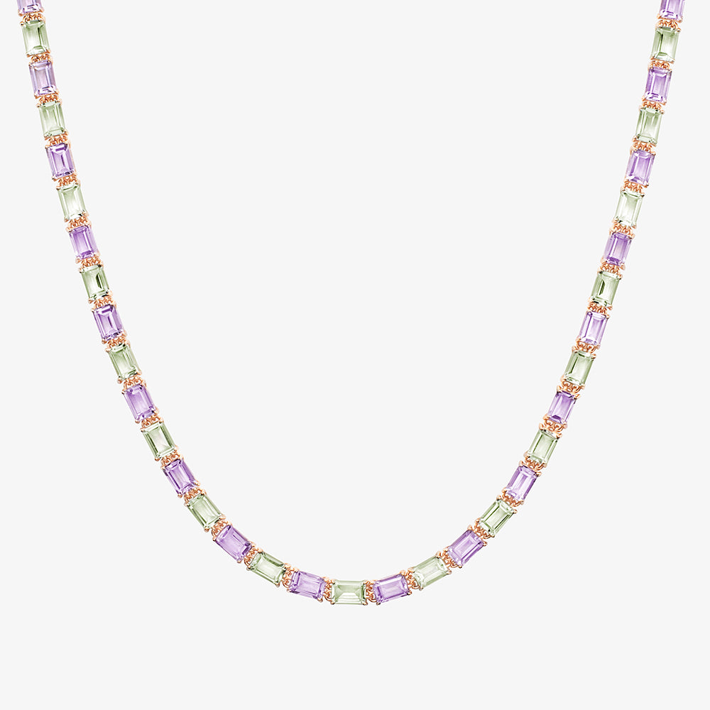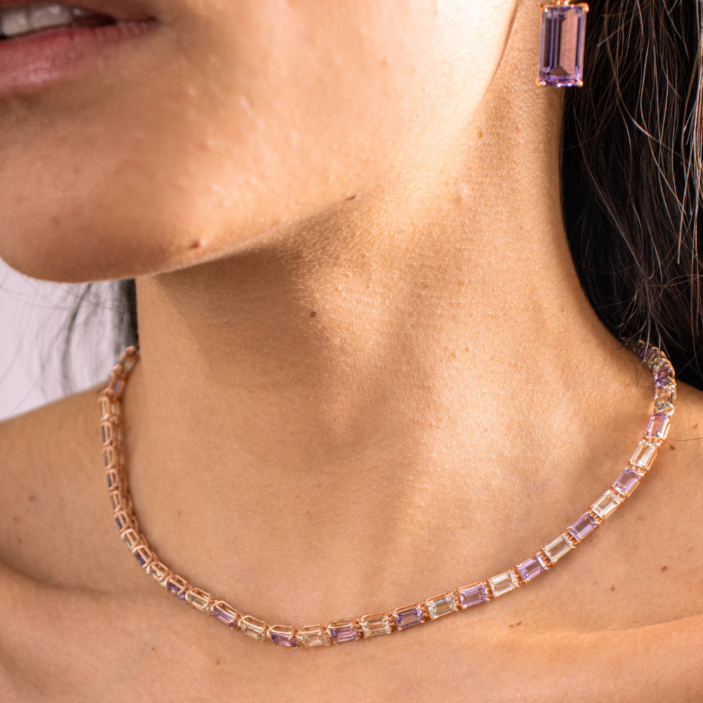 Ouro Rosé 18k com pedras naturais de Ametista Lavanda e pedras naturais de Praziolita. Lapidação Baguete Ametista 6x4 / Lapidação... Leia mais