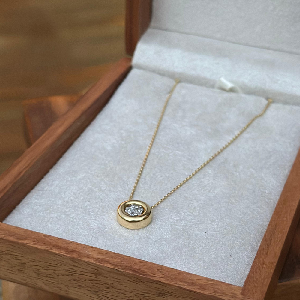 Colar Ponto de Luz com Sete Diamantes no Pingente
